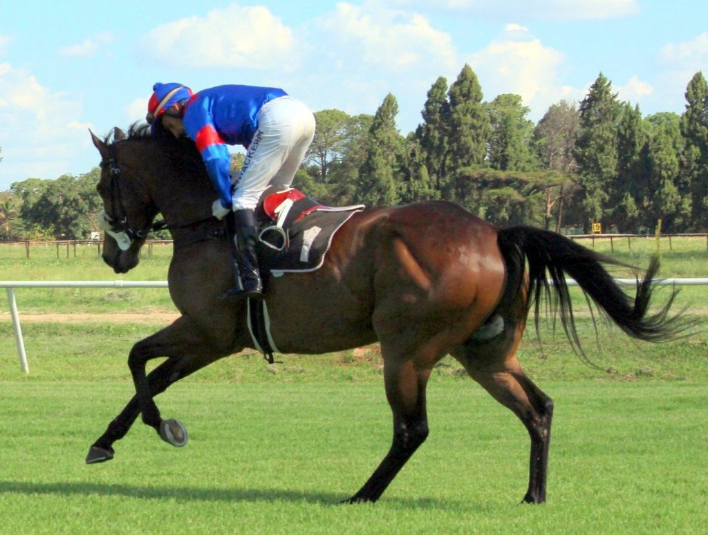 Diego de Gouveia will be aboard FINCHATTON, a nine-year-old gelding by Right Approach (GB) out of a Fort Wood mare. Finchatton won four races at the Vaal over 1400m, 1600m and 2000m. His only start at Borrowdale was on April 18 when four lengths off Silver Coin over 1200m, but this was probably on the short side.