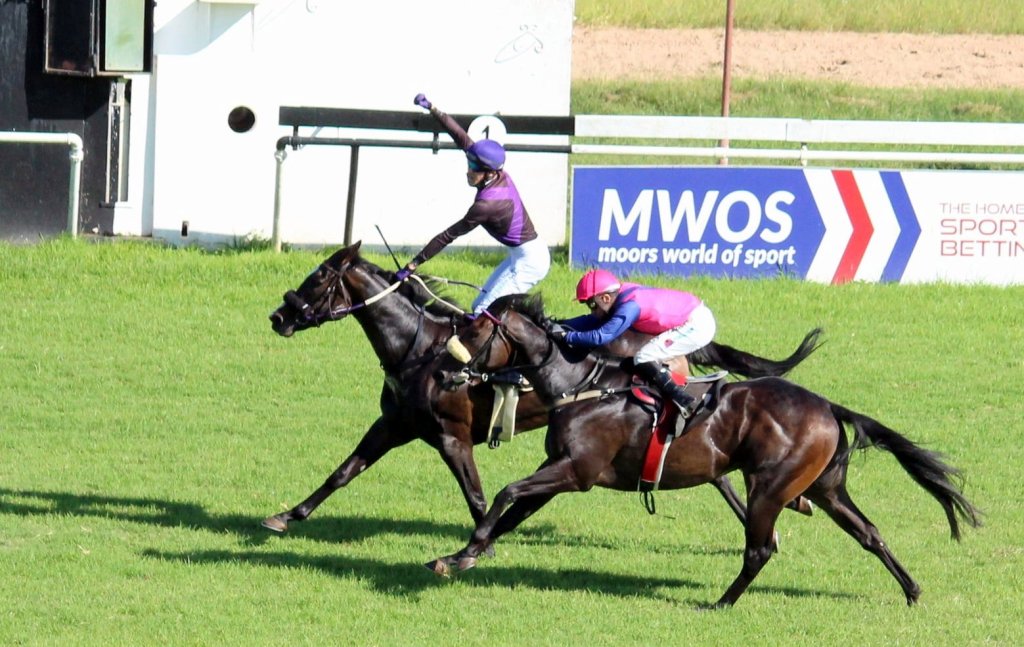 Photograph by Zimbabwe Equine News: Call The Wind held off a challenge from Regulate in the 2022 Zimbabwe Guineas
